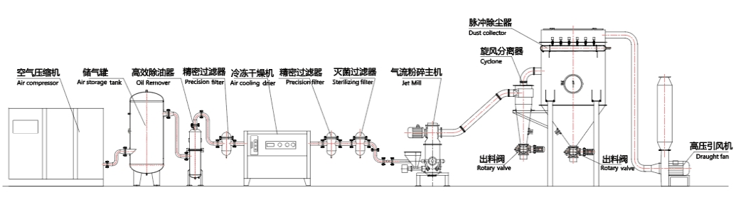 2、 no pollution, because the material is driven by the air flow closed itself collision and crushing, not into Medium, and can be special treatment of the equipment, so that the material will not be formed during the crushing process Pollution, controlling iron content and other factors.